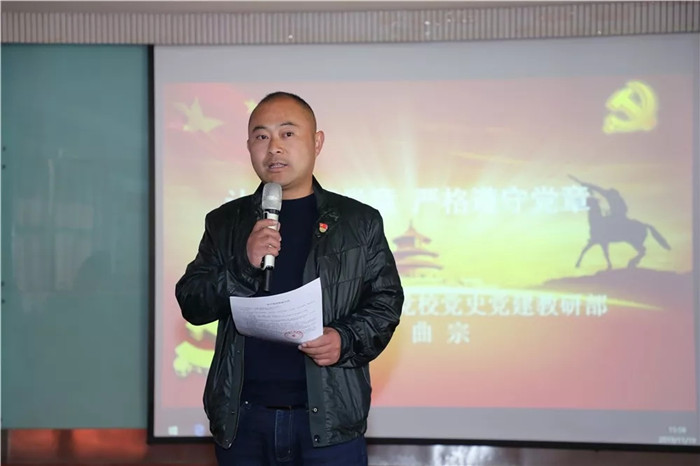 曲宗副教授首先明確了黨章 "根本大法”的地位,指出黨章是規(guī)范和指導(dǎo)黨的工作、黨內(nèi)活動(dòng)、黨的建設(shè)的根本依據(jù)。隨后曲宗副教授介紹了黨章的歷史沿革,以及十九大修改黨章的歷史意義和重要內(nèi)容,號(hào)召每一名黨員認(rèn)真學(xué)習(xí)黨章,嚴(yán)格遵守黨章,時(shí)刻與黨中央保持一致,自覺(jué)做到"兩個(gè)維護(hù)”。要求每一名黨員都把黨章作為政治思想建設(shè)方面的X光機(jī),每年對(duì)照黨章給自己"體檢”一下,紅紅臉、出出汗,牢記入黨初心、遵守黨的紀(jì)律,維護(hù)一名黨員的思想行為純潔性。