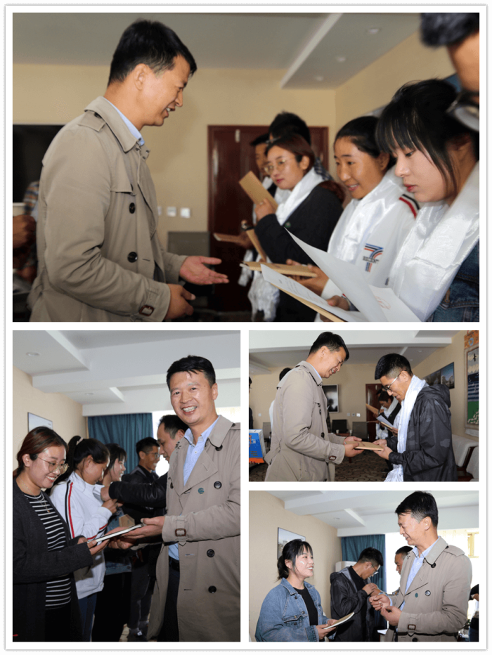 隨后,王斌董事長(zhǎng)向7名規(guī)培生門頒發(fā)了《阜康員工守則》,并敬獻(xiàn)了潔白的哈達(dá),佩戴了阜康院徽,他臨別叮囑:"謹(jǐn)記阜康囑托,謹(jǐn)守阜康準(zhǔn)則,不辱阜康之名,為阜康爭(zhēng)榮!希望你們能夠腳踏實(shí)地在華西醫(yī)院和成都市第三人民醫(yī)院帶教老師的指導(dǎo)下完成規(guī)培計(jì)劃,并在三年內(nèi)考過(guò)執(zhí)業(yè)醫(yī)師資格證和規(guī)范化培訓(xùn)資格證,按時(shí)歸來(lái)服務(wù)阜康、報(bào)效西藏!”