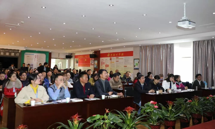 正式開講前,文進副所長代表四川大學(xué)華西醫(yī)院醫(yī)院管理研究所向阜康醫(yī)療贈送了醫(yī)院管理專業(yè)書籍,西藏阜康醫(yī)療股份有限公司黨委書記、董事長王斌接受了饋贈。王斌隨后向與會老師、同學(xué)介紹了阜康醫(yī)療的創(chuàng)業(yè)歷程。從2005年開始,經(jīng)過全體員工13年的不懈奮斗,阜康由當(dāng)初只有70張床位的小醫(yī)院發(fā)展成為530張床位,工作人員1057人,集醫(yī)療、教學(xué)、科研、預(yù)防、保健、康復(fù)、急救和社區(qū)衛(wèi)生服務(wù)于一體的西藏民營醫(yī)療機構(gòu),在醫(yī)學(xué)領(lǐng)域開創(chuàng)諸多全區(qū)之先河,為西藏的醫(yī)療事業(yè)發(fā)展、保障各族群眾的身體健康作出了巨大貢獻。