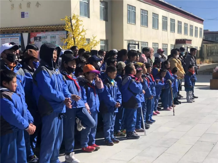 11月1日上午,西藏阜康天使基金會(huì)吉拉女士受西藏阜康醫(yī)療股份有限公司黨委書(shū)記、阜康天使基金會(huì)會(huì)長(zhǎng)王斌先生,西藏阜康醫(yī)療股份有限公司總經(jīng)理、阜康天使基金會(huì)秘書(shū)長(zhǎng)劉瀟瀟女士委托與西藏阜康醫(yī)院義診隊(duì)一起,攜價(jià)值一萬(wàn)五千元的藥品和兩萬(wàn)元的物資來(lái)到那曲市特殊教育學(xué)校,為這里的孩子們帶來(lái)了文化體育學(xué)習(xí)用品及藥品等物資。在特校校長(zhǎng)次仁拉姆的組織下,特校師生列隊(duì)歡迎我們的到來(lái),還精心準(zhǔn)備了錦旗和潔白的哈達(dá)。