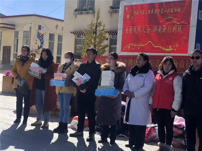 校長(zhǎng)次仁拉姆向西藏阜康天使基金會(huì)贈(zèng)送錦旗