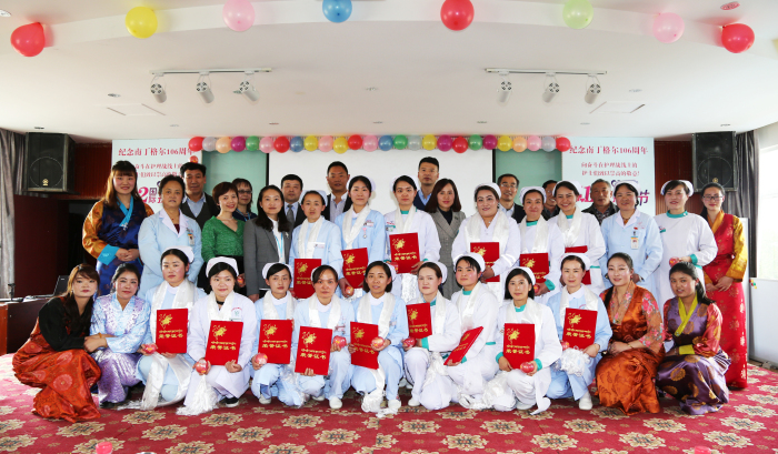西藏阜康醫(yī)院心腦血管分院內(nèi)三科 護士長汪洋代表優(yōu)秀管理者、內(nèi)二科護士劉秀蓮代表十佳護士分別發(fā)言。 敖德秀總院長作總結,她希望全院護士繼承和發(fā)揚南丁格爾救死扶傷、關愛生命、無私奉獻的職業(yè)宗旨和護理事業(yè)的光榮傳統(tǒng),不斷學習,為我院護理質(zhì)量的提高、為上市和創(chuàng)評工作順利通過做出自己的貢獻。