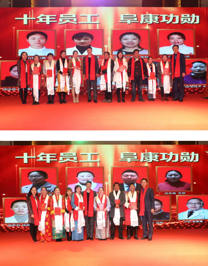 隨后,西藏阜康醫(yī)院業(yè)務(wù)院長劉連福宣讀了《關(guān)于2019年度西藏阜康醫(yī)療股份有限公司榮獲先進(jìn)獎項(xiàng)及名單的表彰決定》,除了對先進(jìn)個人和集體進(jìn)行表彰,本次大會還為"10年員工”進(jìn)行表彰并獎勵一萬元,董事長王斌率院領(lǐng)導(dǎo)為先進(jìn)集體和優(yōu)秀個人頒發(fā)了證書和獎金。