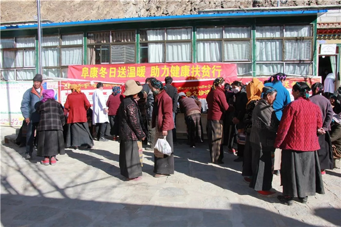 11月26日下午,西藏阜康醫(yī)院醫(yī)療隊(duì)來(lái)到了扎西頂村,聽(tīng)說(shuō)我們的到來(lái),不少牧民群眾早已在村民委員會(huì)等候,醫(yī)療隊(duì)到達(dá)后快速投入義診工作,為大家量血壓、做B超等,為近200名牧民送醫(yī)、送藥,發(fā)放了價(jià)值6000余元藥品。義診結(jié)束后,扎西頂村駐村工作隊(duì)隊(duì)長(zhǎng)普布瓊達(dá)與醫(yī)療隊(duì)共同為義診群眾贈(zèng)送了價(jià)值5000余元的衣物。