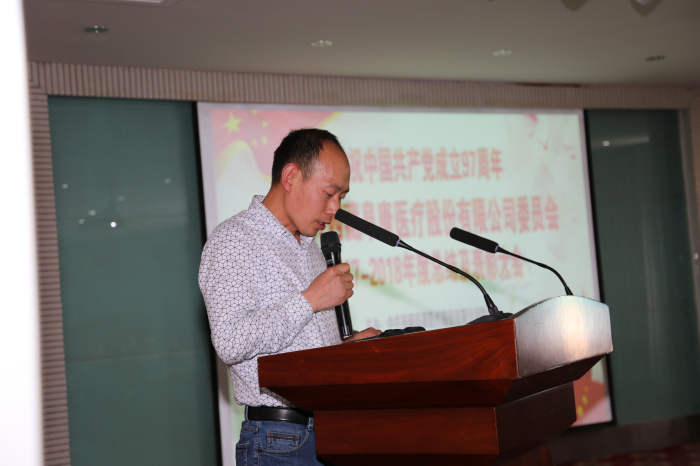 6月29日,"慶祝中國(guó)共產(chǎn)黨成立97周年暨中共西藏阜康醫(yī)療股份有限公司委員會(huì)2017-2018年度總結(jié)及表彰大會(huì)”在阜康婦產(chǎn)兒童分院4樓會(huì)議室隆重召開(kāi)。公司黨委書(shū)記王斌,區(qū)黨委組織部組織四處(兩新工委辦公室)負(fù)責(zé)人沈策,公司黨委副書(shū)記陳彬、黨委委員劉瀟瀟、劉連福、楊國(guó)洪及全體黨員參加會(huì)議。