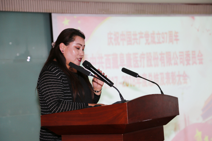 優(yōu)秀黨務(wù)工作者索珍作代表發(fā)言。她由衷感謝公司黨委的信任,表示自己會(huì)把這份信任變?yōu)楣ぷ鞯膭?dòng)力,進(jìn)一步提高對(duì)患者的服務(wù)能力和水平,為醫(yī)院的發(fā)展貢獻(xiàn)自己的力量,不辱一個(gè)新時(shí)代共產(chǎn)黨員的光榮使命。